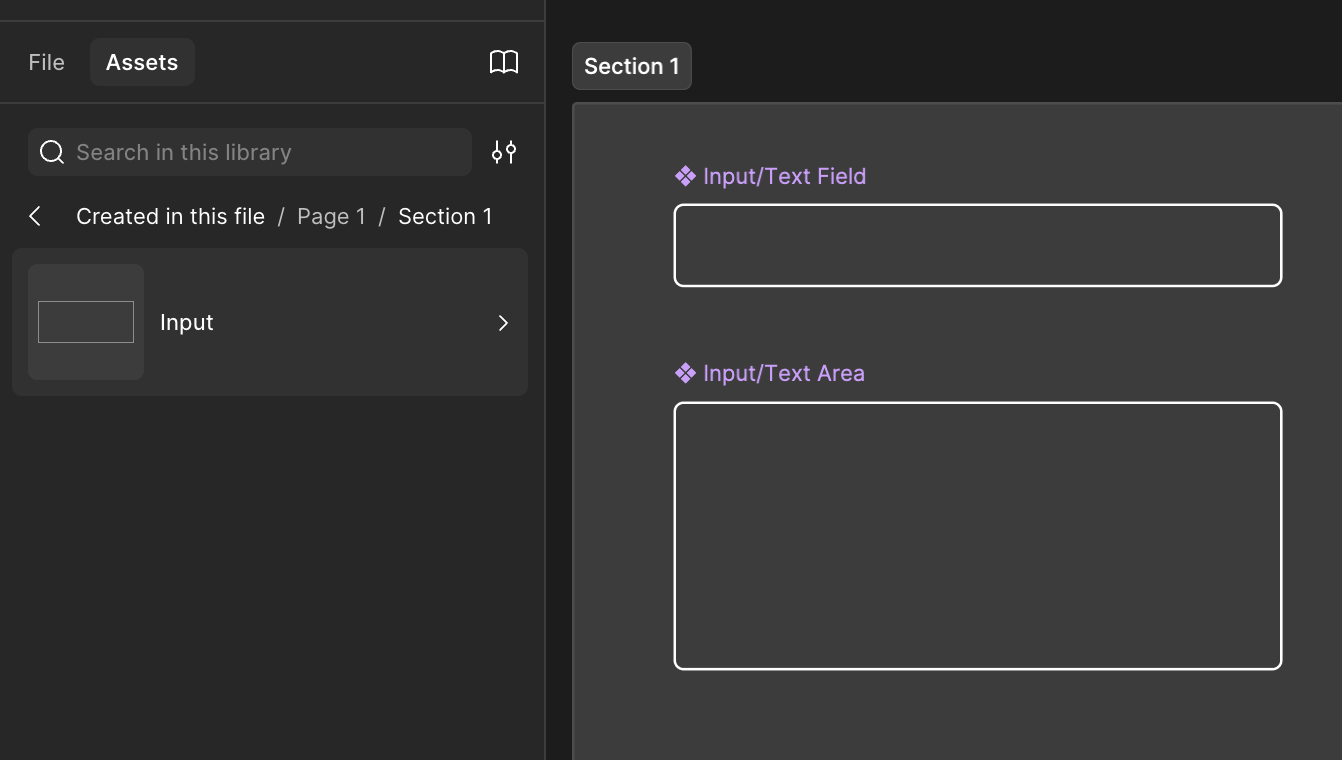 これは具体的にはどういうことかと言うと、Figmaの画面左上にある Assets タブを開いた時に、フォルダ分けされたような見え方にすることができます。